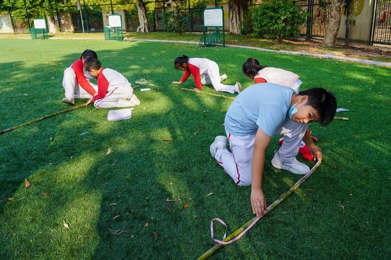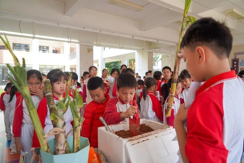 “今天的活動(dòng)亮點(diǎn)是跨學(xué)科融合,各學(xué)科挖掘甘蔗相關(guān)素材開設(shè)游園活動(dòng),比如數(shù)學(xué)可進(jìn)行測(cè)量,體育有甘蔗運(yùn)球接力跑,語文學(xué)科有詞語接龍,美術(shù)有畫甘蔗、掐絲景泰藍(lán)創(chuàng)作等?!敝x少聲說,通過這次活動(dòng),讓學(xué)生體會(huì)到種植勞動(dòng)的不易,領(lǐng)悟農(nóng)民“勞動(dòng)創(chuàng)造幸?!钡牡览?,同時(shí)學(xué)習(xí)甘蔗扎根泥土、一步一個(gè)腳印、一節(jié)一節(jié)成長(zhǎng)的精神,并在跨學(xué)科融合活動(dòng)學(xué)到數(shù)學(xué)測(cè)量計(jì)算、美術(shù)繪畫、英語應(yīng)用、勞動(dòng)實(shí)踐、信息科學(xué)等多方面內(nèi)容。