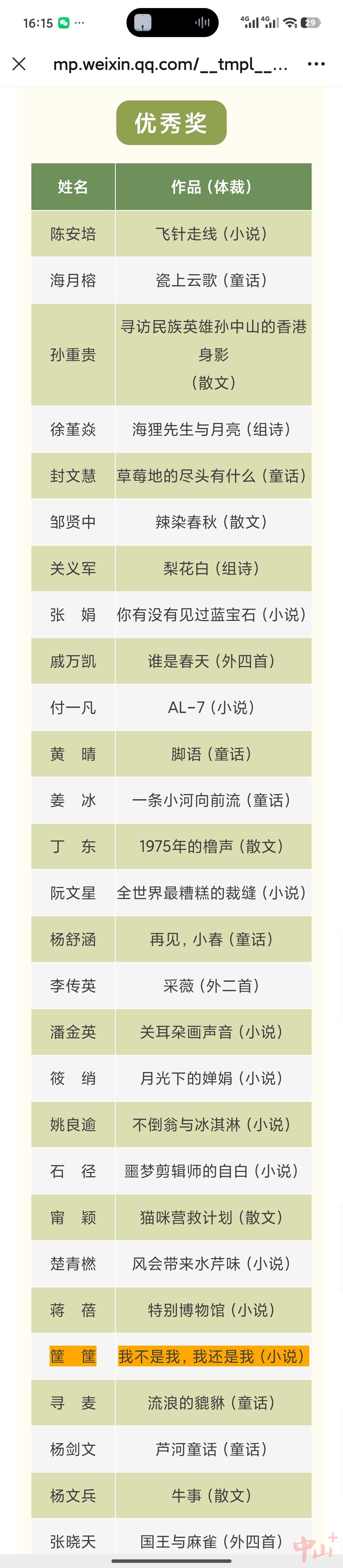 12月19日,第二屆黃慶云兒童文學(xué)創(chuàng)作大賽公示期圓滿(mǎn)結(jié)束(公示期為12月15日至19日),中山作家筐筐憑借奇幻成長(zhǎng)小說(shuō)《我不是我,我還是我》脫穎而出,榮獲優(yōu)秀獎(jiǎng)。這是她繼2020年斬獲《少男少女》雜志“小作家杯”全國(guó)校園文學(xué)創(chuàng)作大賽小說(shuō)類(lèi)成人組優(yōu)秀獎(jiǎng)后,在兒童文學(xué)創(chuàng)作領(lǐng)域再添亮眼榮譽(yù)。