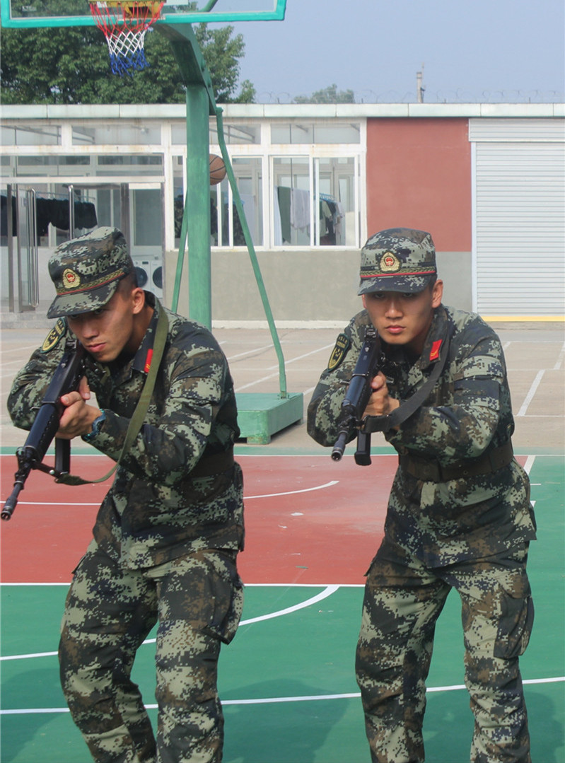 “小時(shí)候,我看過(guò)一部名為《烈火雄心》的電視劇,講的是消防員奮勇?lián)尵壬?,以濃煙考?yàn)斗志、以烈火洗煉人生的故事,那時(shí)我就對(duì)執(zhí)行任務(wù)類(lèi)型的職業(yè)非常向往。再加上男生打小對(duì)飛機(jī)、槍支武器都有一種特殊的感覺(jué),那時(shí)候就在想,有機(jī)會(huì)一定要去部隊(duì)歷練一番試試。”任伯聰告訴記者,大二那年,他終于夢(mèng)圓軍營(yíng),服役于武警河南總隊(duì)某中隊(duì)?!?個(gè)月的新兵連非常充實(shí),隊(duì)列訓(xùn)練、拉練、長(zhǎng)途行軍......讓我印象深刻的是在行軍過(guò)程中,不管去到什么地方,只要一身軍裝在身,當(dāng)?shù)氐男∨笥讯紩?huì)朝我敬禮,老百姓也特別友善,讓我感到非常自豪,這種軍民魚(yú)水情讓我感覺(jué)非常好。” 服役期間,因表現(xiàn)突出,任伯聰被評(píng)為“優(yōu)秀義務(wù)兵”,于2019年退出現(xiàn)役。離開(kāi)部隊(duì)后,他重返大學(xué)校園完成學(xué)業(yè),并加入了學(xué)校的國(guó)防教育服務(wù)中心,為學(xué)校的征兵宣傳工作奔走發(fā)聲。在校期間,任伯聰從未忘記自己曾經(jīng)是一名軍人?!拔覉?jiān)持每天長(zhǎng)跑10公里,練習(xí)單杠,也一直有按照之前部隊(duì)的訓(xùn)練標(biāo)準(zhǔn)來(lái)保持鍛煉?!?/p>  左一為任伯聰。