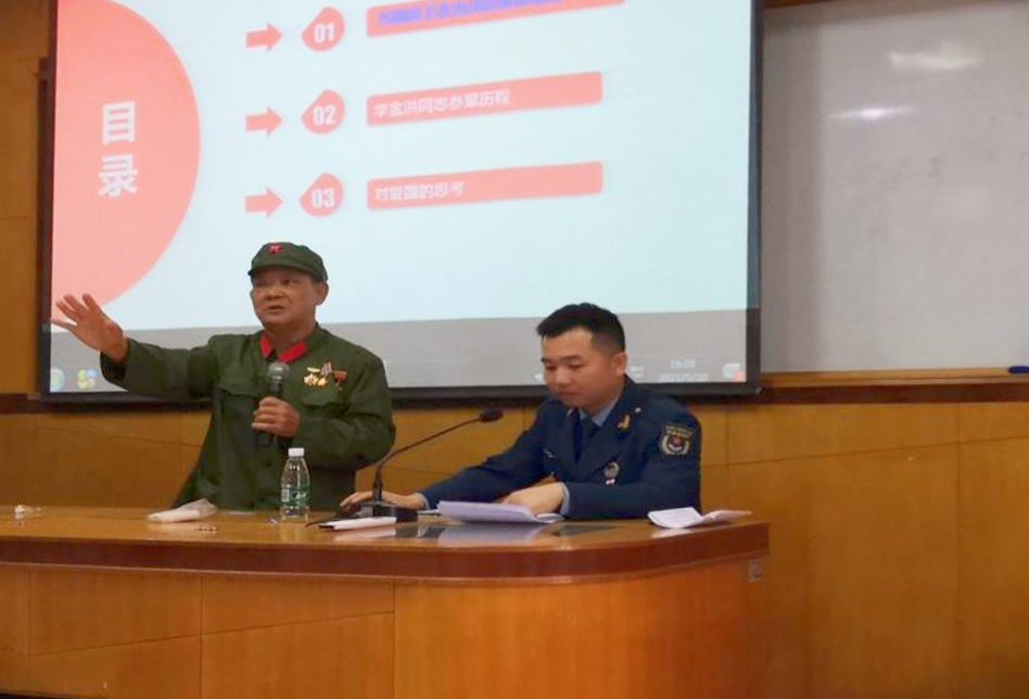 1979年3月10日,尖刀班接到了去三埡口搜山的任務(wù),突然與敵軍遭遇,當(dāng)時尖刀班只配備了一挺機槍,而李金洪就是機槍手,當(dāng)時由于地形對我方不利,不便發(fā)動火力打擊和進行蔭蔽工作。這時,班長一邊指揮2名戰(zhàn)士立即下山給后方的大部隊報信,一邊組織全班沉著埋伏,等待敵人靠近。