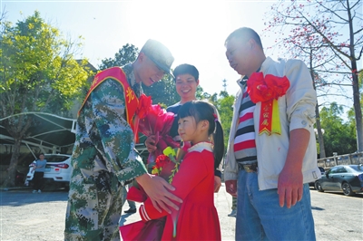 隨后,龍石村的兩名新兵與五桂山社區(qū)的一名新兵匯合,三人一齊前往五桂山街道辦事處參加新兵歡送儀式。會上,五桂山街道黨工委副書記、辦事處主任張喬楚為新兵發(fā)放慰問金及獻鮮花?;顒蝇F(xiàn)場,還有一幕熱鬧而溫馨的場面令人感動。三名準(zhǔn)新兵紛紛向父母獻花表達感激之情:給母親一個擁抱、給父親一個軍禮,父母也送上一句句殷切叮囑。