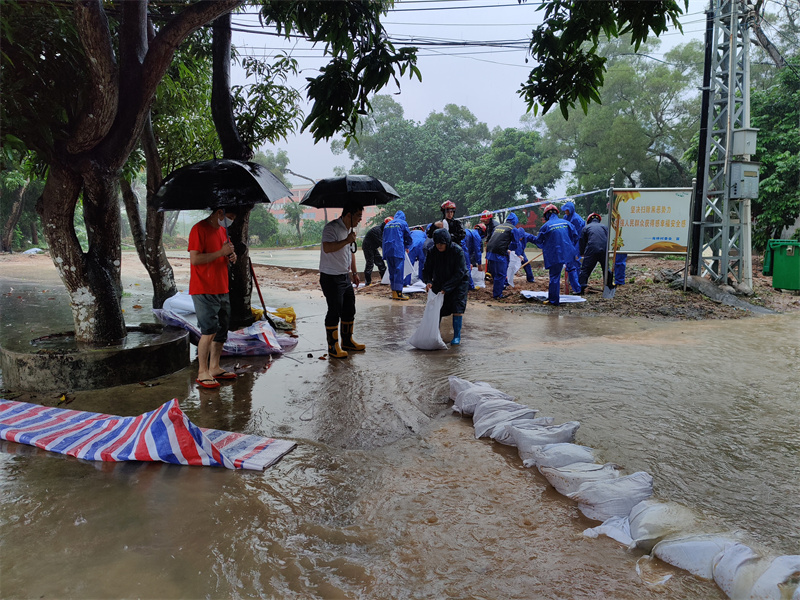 會后,五桂山街道武裝部組織應急分隊民兵檢查防汛救援裝備保養(yǎng)情況,熟悉操作使用救援裝備,明確應急集中參與搶險處置流程,確保人員隊伍與應急救援物資裝備器材處于應急狀態(tài),在關鍵時刻能夠拉得出、用得上、起作用。  ▲圖為五桂山南橋新村出現(xiàn)內(nèi)澇情況,村里所屬民兵就近動員,參與處置內(nèi)澇。