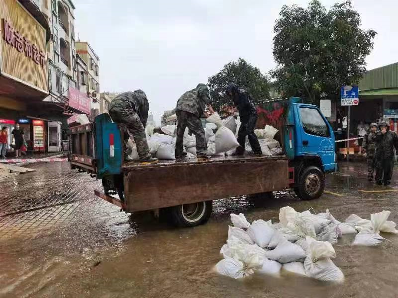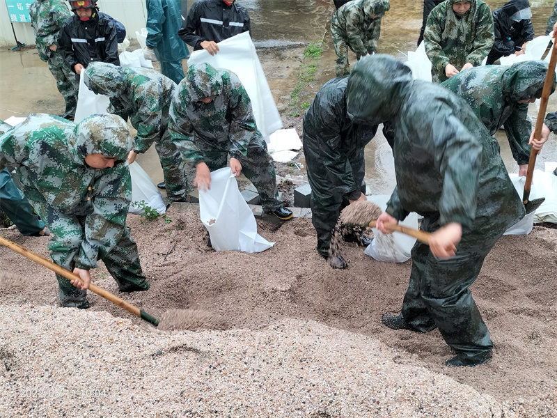 “我們已做好充分準備,手電筒、救生衣、雨衣、膠鞋等防汛物資已準備就緒,24小時防汛值班,隨時待命,確保防汛工作有序進行。”五桂山武裝部相關工作人員呂兆彬介紹,上午9時許,南橋新村出現(xiàn)內(nèi)澇情況,村里所屬民兵已就近動員,前往現(xiàn)場參與處置。 同時,中山軍分區(qū)要求各鎮(zhèn)街民兵應急分隊迅速收攏人員,積極參與本鎮(zhèn)街、村防汛救災工作,在防汛搶險一線打響“保衛(wèi)戰(zhàn)”,全力以赴保障人民群眾生命財產(chǎn)安全。中山軍分區(qū)相關負責人介紹:“前幾天,我們都已經(jīng)指導各鎮(zhèn)街武裝部對防汛裝備器材進行了檢修,并結合民兵應急分隊集中輪訓開展了防汛應急演練?!?/p>  ▲圖為神灣鎮(zhèn)民兵在裝沙袋,準備堵住內(nèi)澇道路。(通訊員 吳容照 攝)