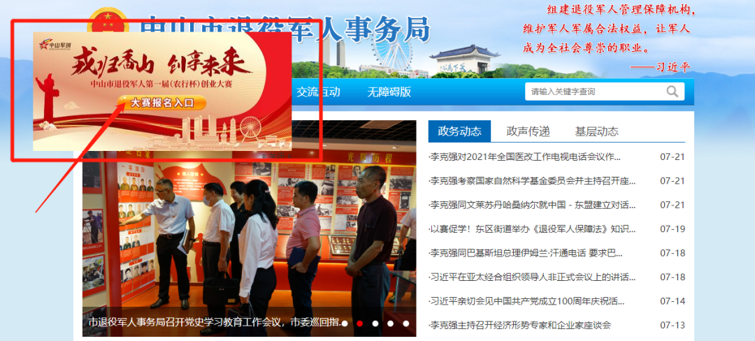 由中山市退役軍人事務(wù)局、中山市人力資源和社會保障局共同舉辦,主題為“戎歸香山 創(chuàng)享未來”的中山市退役軍人第一屆(農(nóng)行杯)創(chuàng)業(yè)大賽正在火熱報名中。為幫助廣大退役軍人更高效、準(zhǔn)確地報名參加大賽,制作了以下指引,希望對廣大參賽者有所幫助。