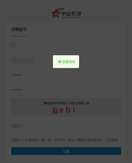 點擊【注冊】按鈕,按提示輸入帳號相關(guān)信息后點擊注冊,當(dāng)彈框出“注冊成功”,表示注冊賬號成功!如圖2-4所示: