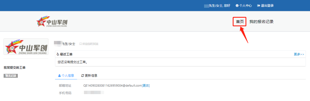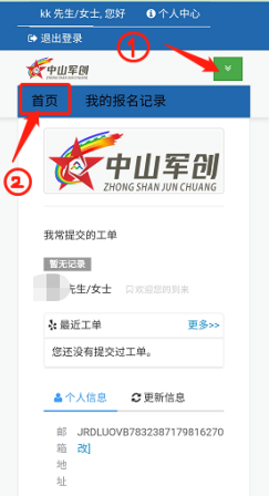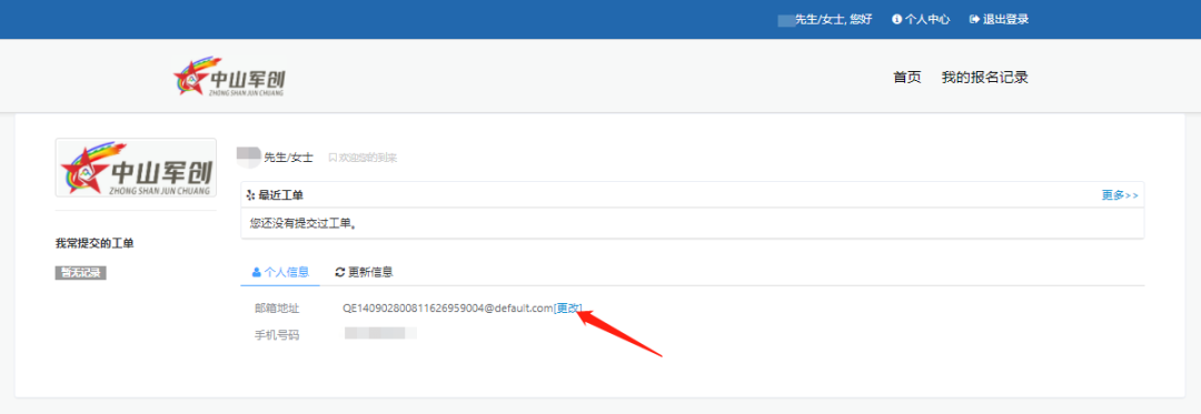 注冊成功后自動跳轉(zhuǎn)至登錄界面,填寫相應(yīng)信息后登錄賬號,進(jìn)入個人中心首頁,將系統(tǒng)默認(rèn)郵箱更改為個人常用郵箱,方便大賽執(zhí)委會通知發(fā)送。如圖5-6所示: