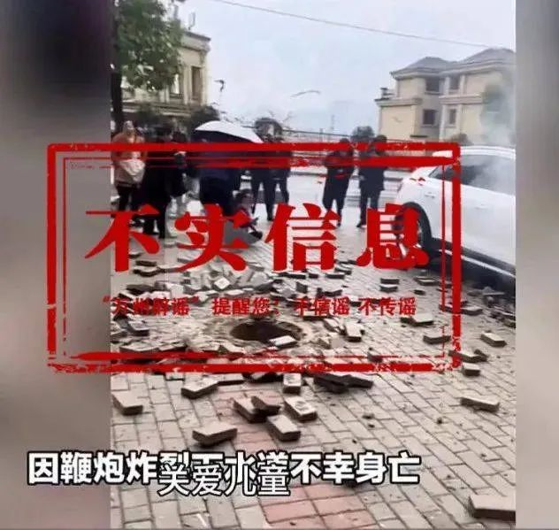近日,一則短視頻消息聲稱,重慶萬州一女童向污水道投擲鞭炮,導(dǎo)致一人死亡。經(jīng)相關(guān)部門核實(shí),該信息為謠言信息。