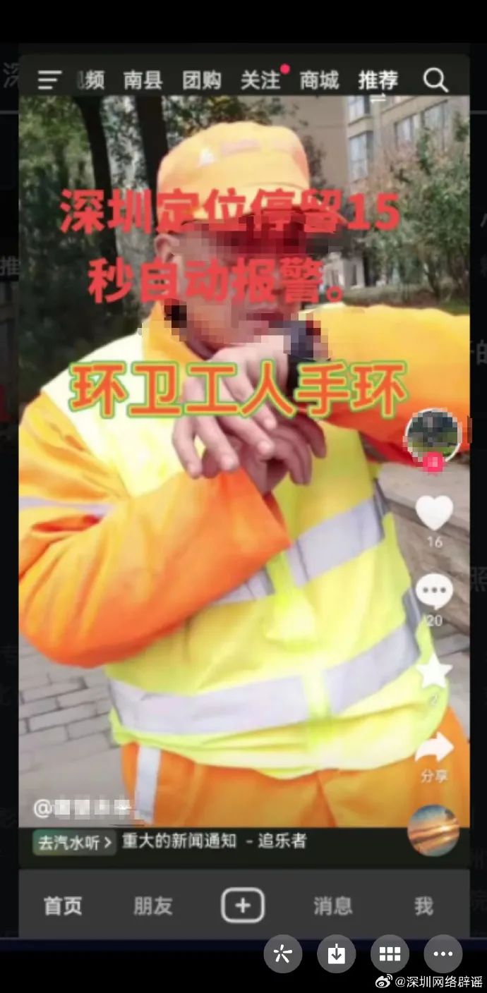 深圳環(huán)衛(wèi)工人定位手環(huán)停留15秒自動報警?官方回應(yīng)