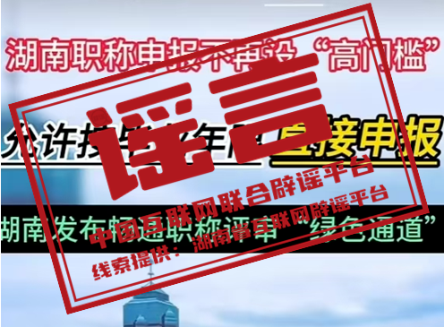 謠 言 湖南職稱申報取消“高門檻”,允許按畢業(yè)年限直接申報?