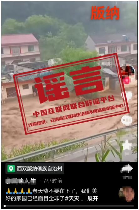 辟 謠 云南辟謠一則西雙版納傣族自治州汛情謠言